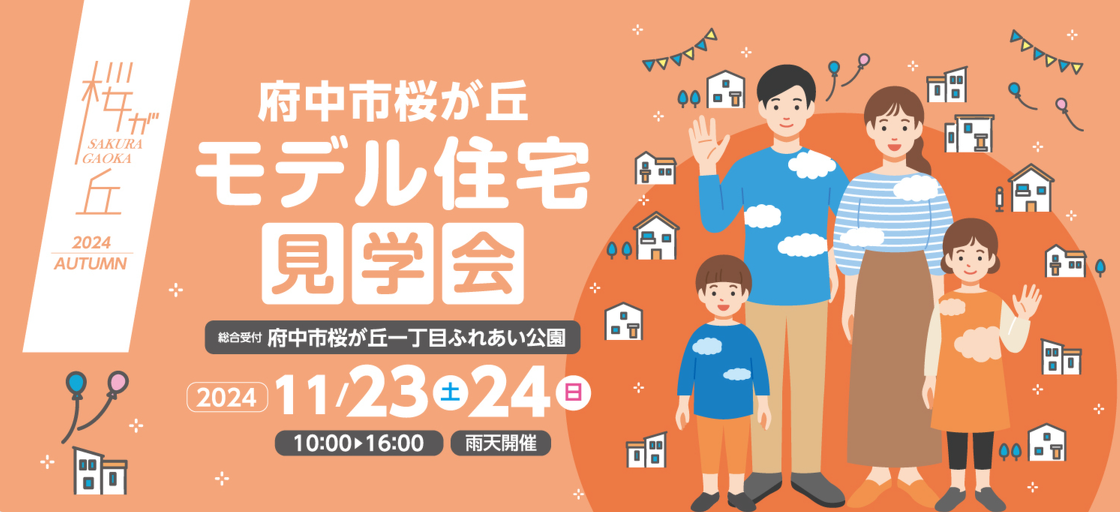 2024年11月23日(土)、24日(日) 府中市桜が丘モデル住宅見学会開催! イベント 2025/01/09 2024年11月23日・24日の土日に、府中市桜が丘にてモデル住宅見学会を行います。 府中市が主催で、複数のメーカーの住宅を見学することができます。 また、ご来場・事前予約プレゼントなどもございますので、 現在マイホーム検討中の方、そうでない方もぜひお越しください!! 府中・福山周辺で土地をお探しの方もお気軽にご相談ください。 桜が丘モデルハウス見学会の詳細は、 下の画像(↓)をクリックしてご覧ください。