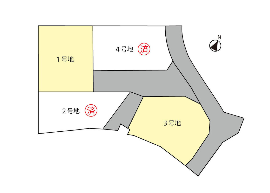 | 1号地 | 189.60㎡(57.35坪) | 689万円 | 12万円 | 【東側】5m/5.0m |